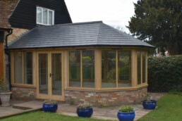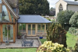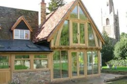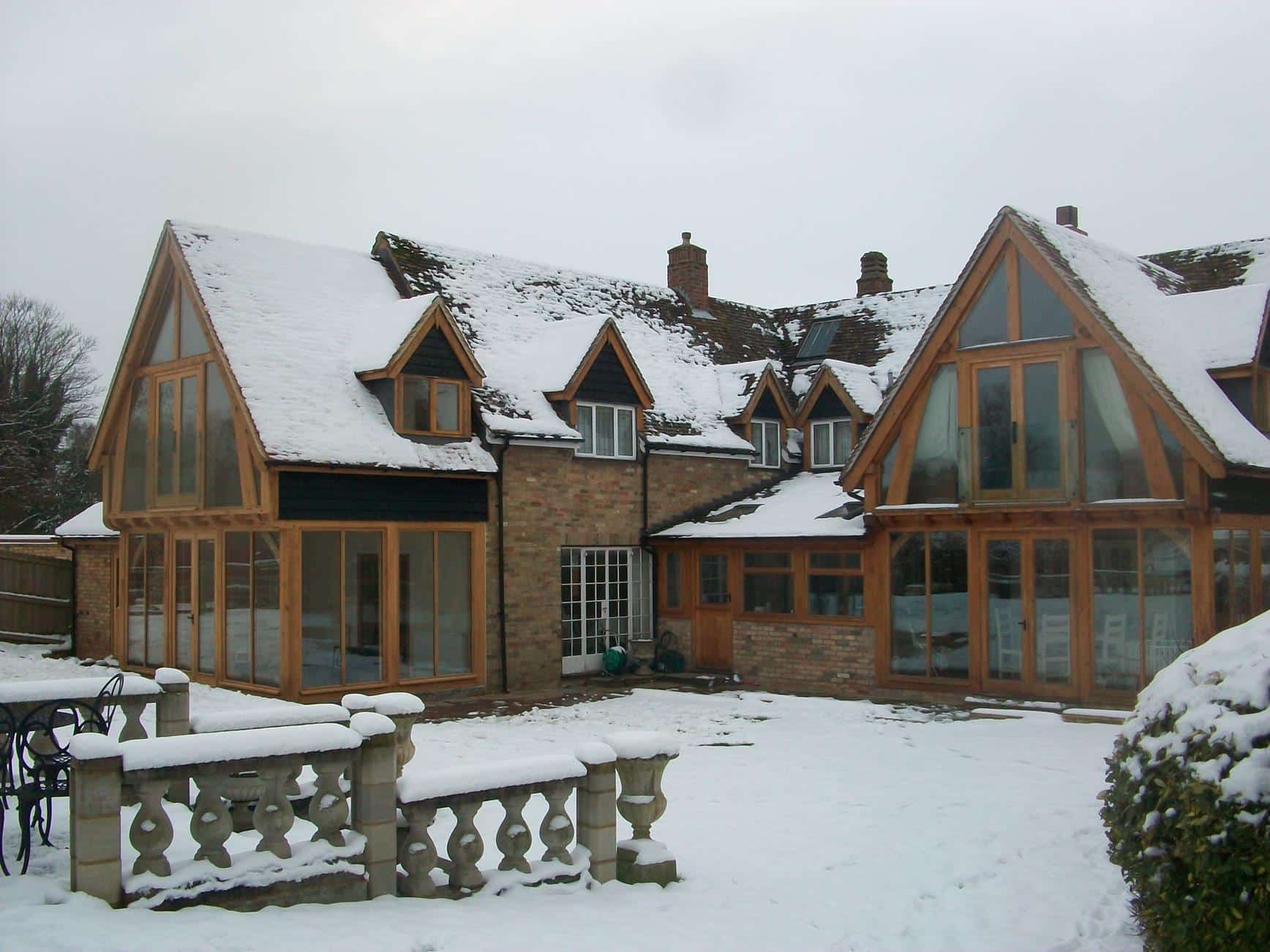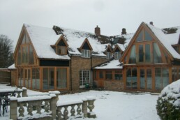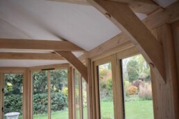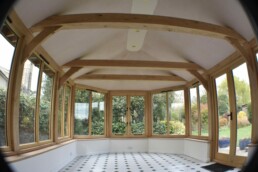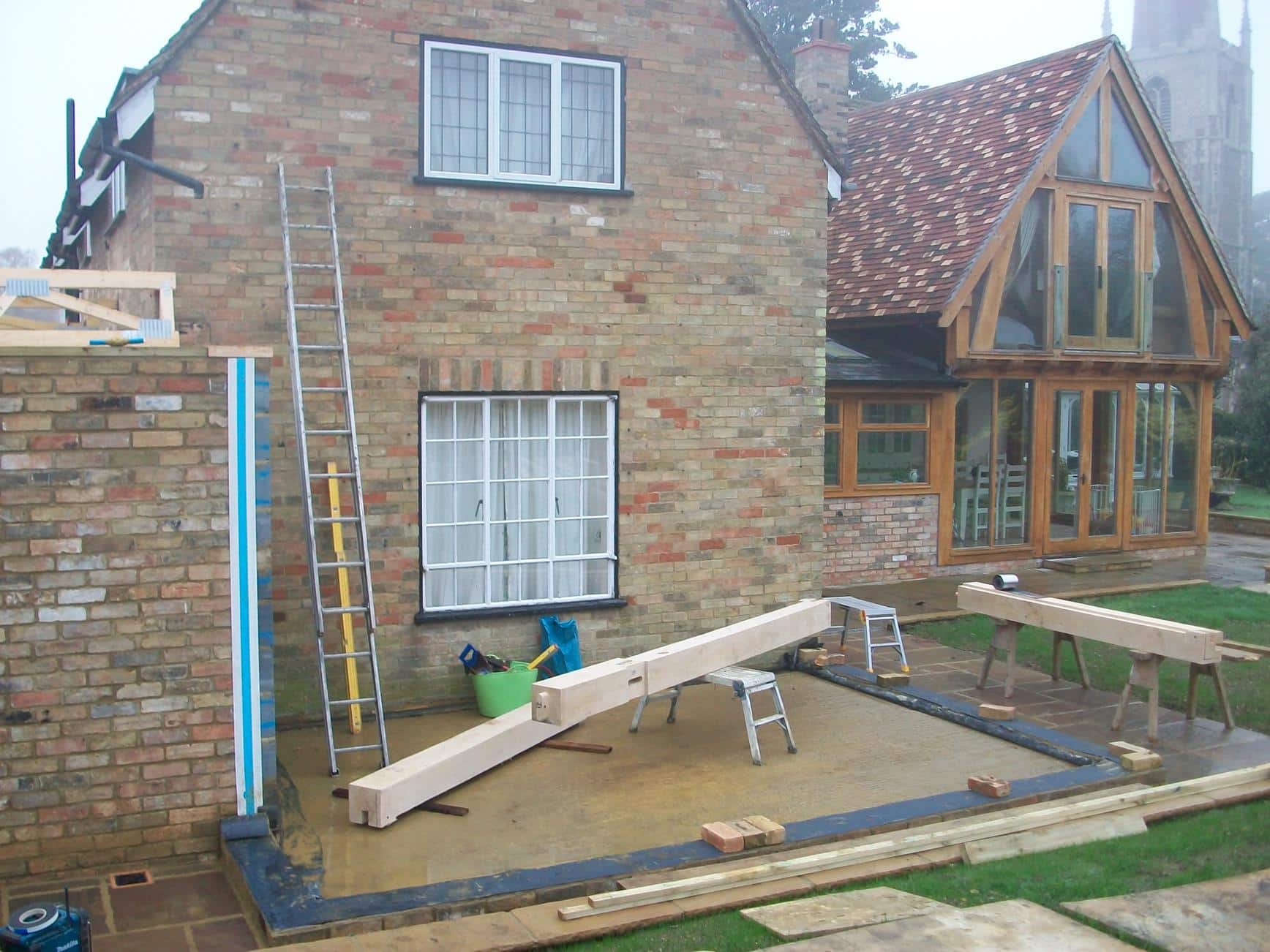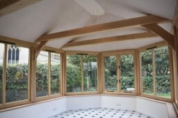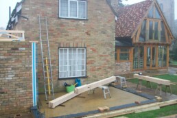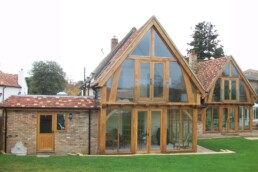 Our most recent project completed at this property was a oak framed conservatory. Firstly, we removed the existing rotten timber framed conservatory. The new conservatory was built with structural grade green oak frame, double glazed windows, underfloor heating and a fully vaulted ceiling.