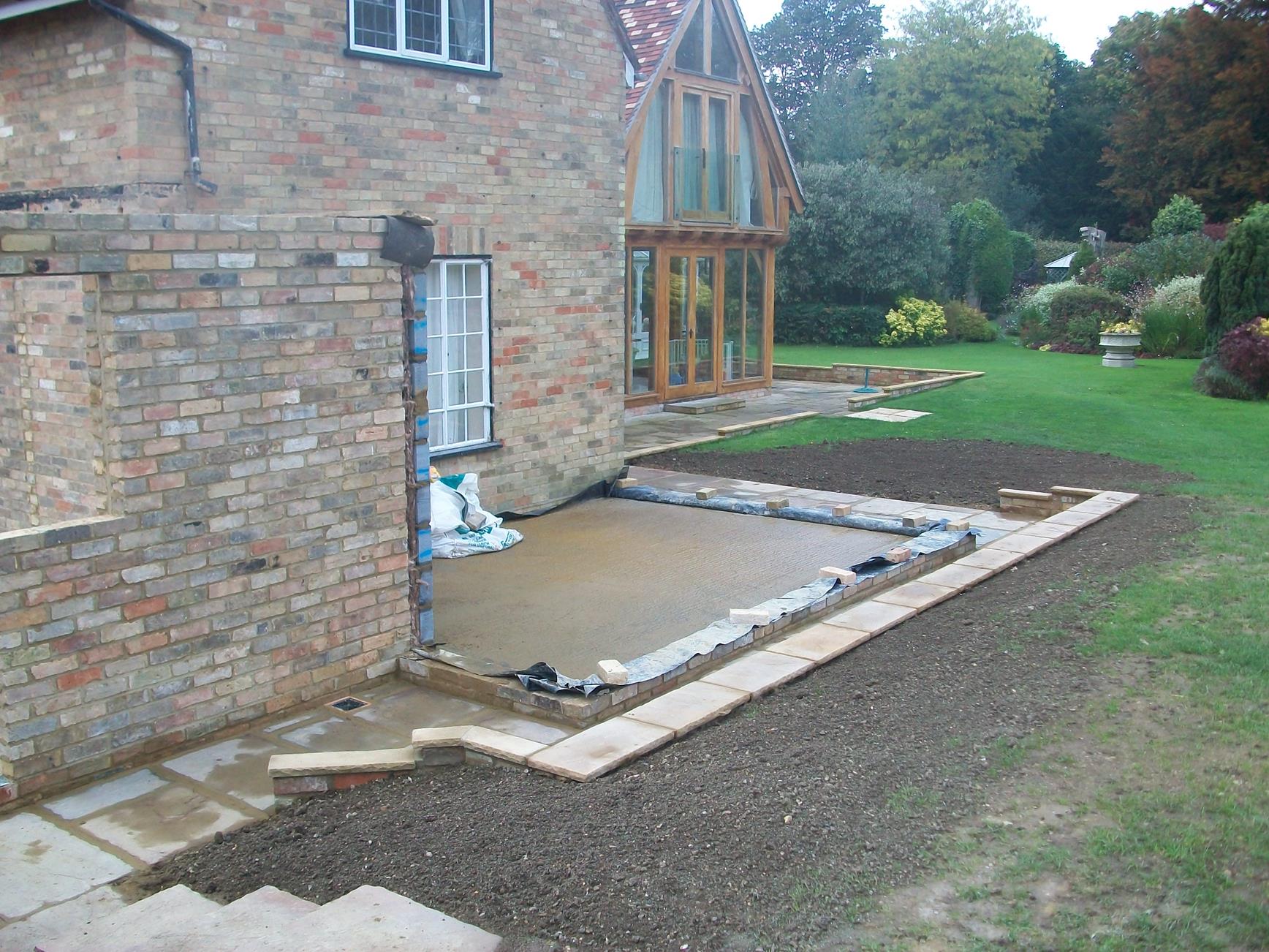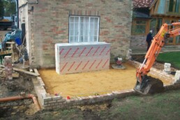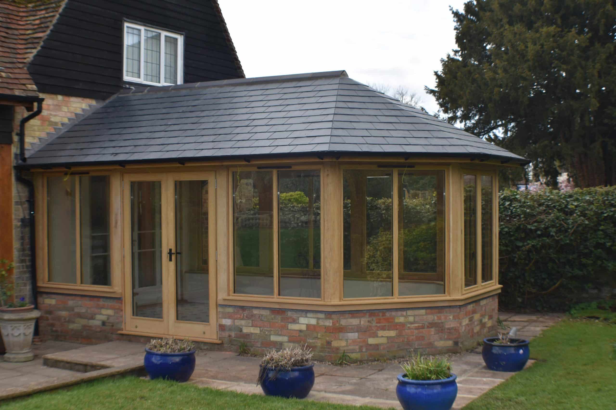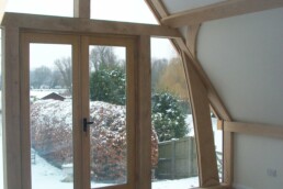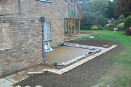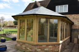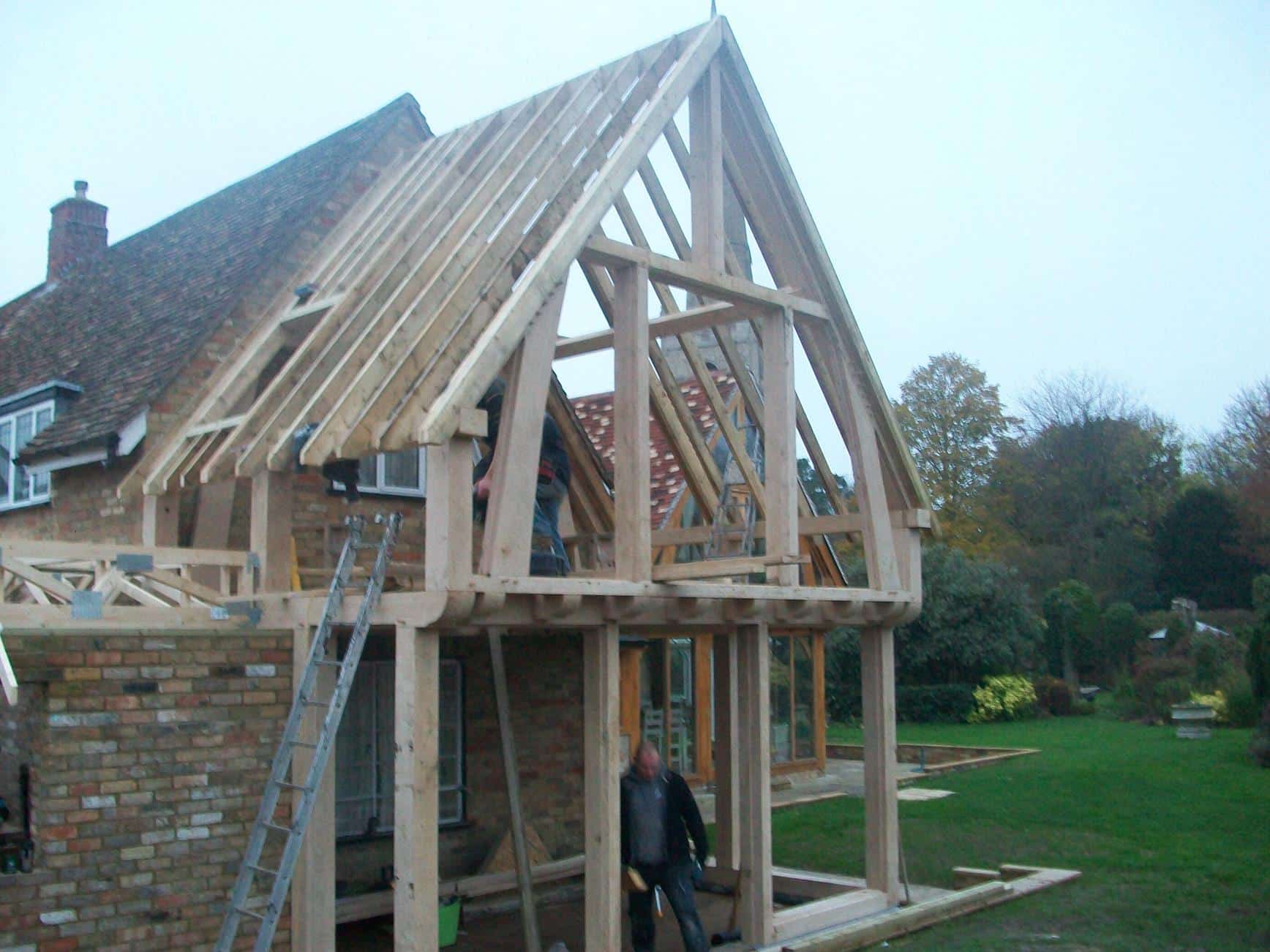 Our most recent project completed at this property was a oak framed conservatory. Firstly, we removed the existing rotten timber framed conservatory. The new conservatory was built with structural grade green oak frame, double glazed windows, underfloor heating and a fully vaulted ceiling.