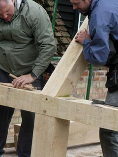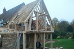 Mr and Mrs Hewitt approached us with their dream of adding cruck frame extensions to their property. The Crucks frame dates back many years but it proves most popular in the medieval period. It comprises of two ‘A’ shaped structures, these are two naturally curved oak beams (crucks blades) with a top horizontal beam. The shape is very advantageous as it carries the entire roof load to the ground.